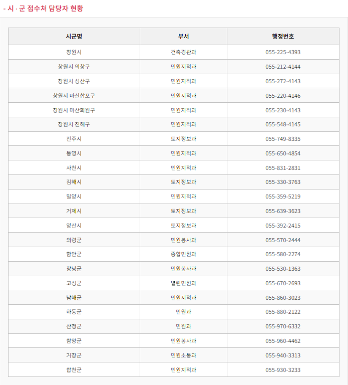 - 주민등록상 거주지 관할 시·군·구청 부동산 업무 담당 부서