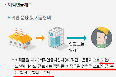 | 기업이 망해도 퇴직금 받을 수 있나요? | 예. 사외 적립되므로 안정적으로 수령 가능합니다. |