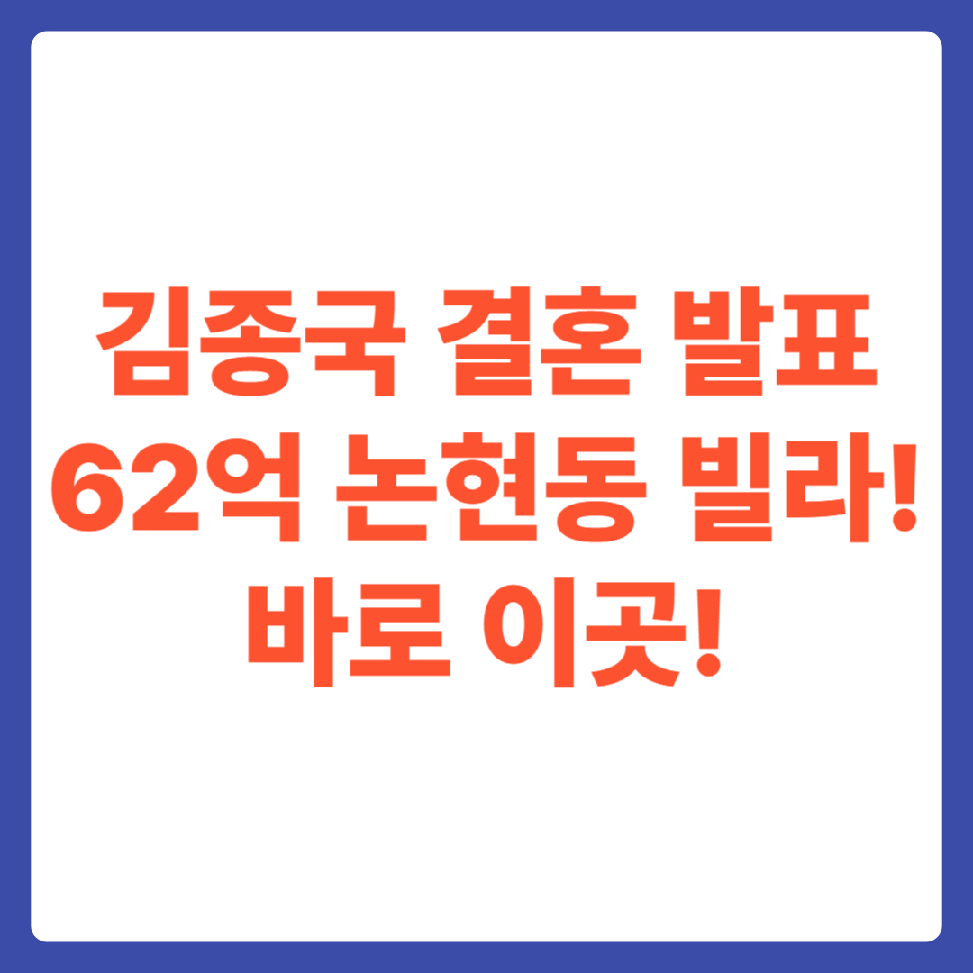김종국 결혼 발표 62억 논현동 빌라! 그곳은 어디일까요?