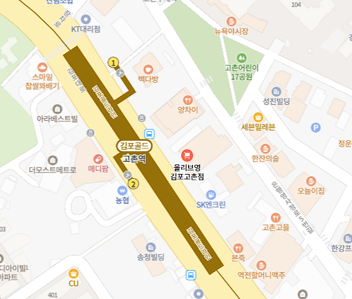 | 올리브영 고촌점 | 김포시 고촌읍 김포대로 | 031-988-5297 | 신용 · 체크카드 사용 가능 |