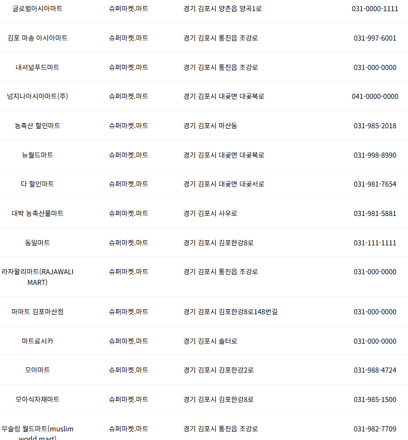 - 3. 김포시 동네마트 사용 가능 매장 목록