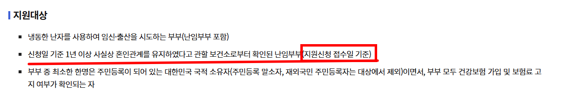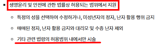 - 주의 사항: 대리모, 수증 난자, 미성년자 정자·난자, 매매된 정자·난자 활용은 지원 제외
