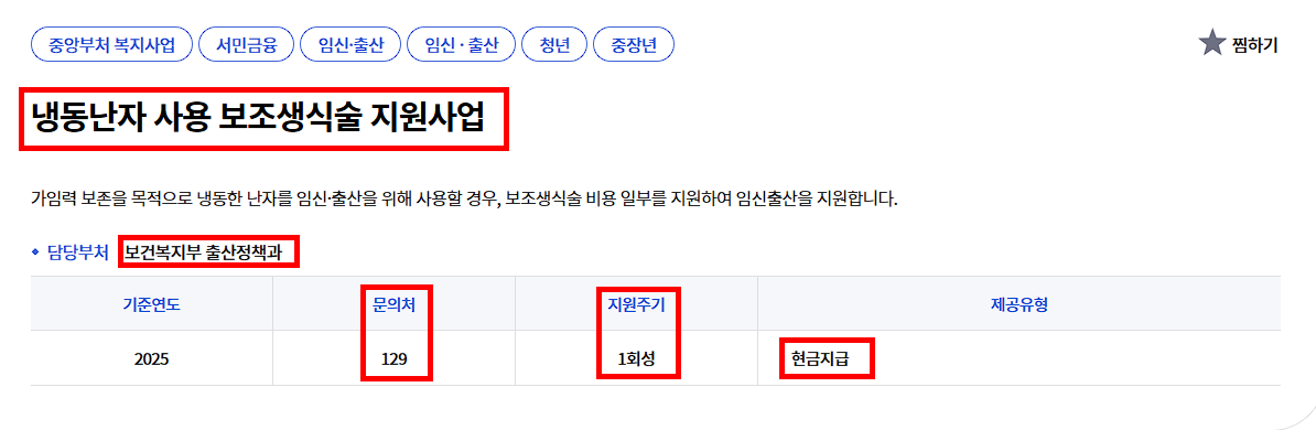- 지원 범위: 난자 해동, 체외수정, 배아 배양, 이식, 착상 검사, 관련 주사제 등