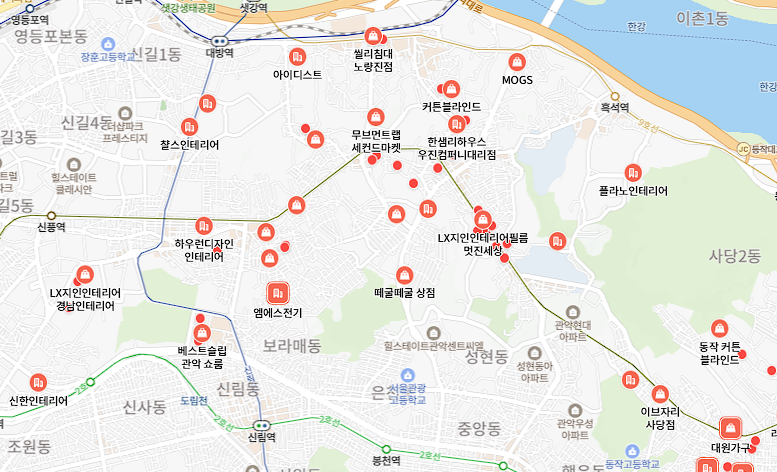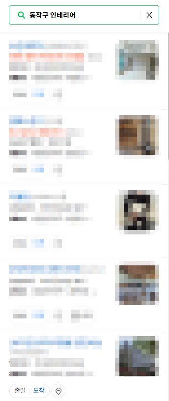 그래서 네이버 지도를 활용해 흑석동 주변 인테리어 업체를 직접 찾아보기 시작했습니다.