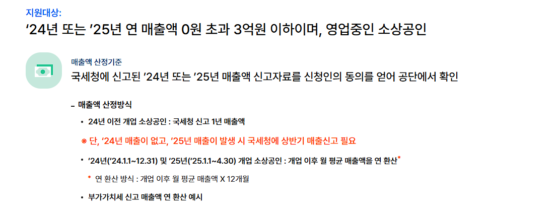 특히 2025년을 기준으로 매출 3억 원 이하 소상공인이라면 거의 대부분이 대상이므로, 본인이 대상자인지 꼭 확인해보고 빠르게 신청하는 것이 좋습니다.