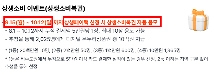 상생페이백 신청자 대상으로 ‘상생소비복권’이벤트도 자동 응모됩니다.