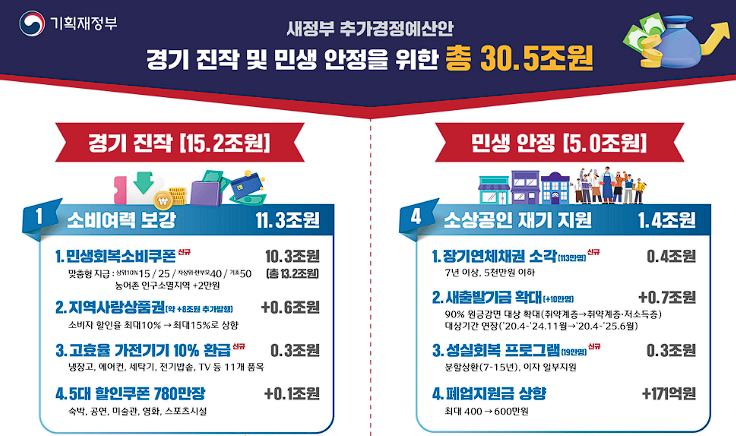 - ❶ 부담경감 크레딧: 연 매출 3억원 이하 소상공인 대상, 공과금·4대 보험료 납부용 50만원 크레딧 지원 (7월 14일부터 신청)