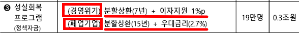 - 경영 위기자: 이자 1%p 인하, 7년 분할 상환