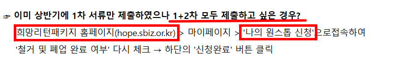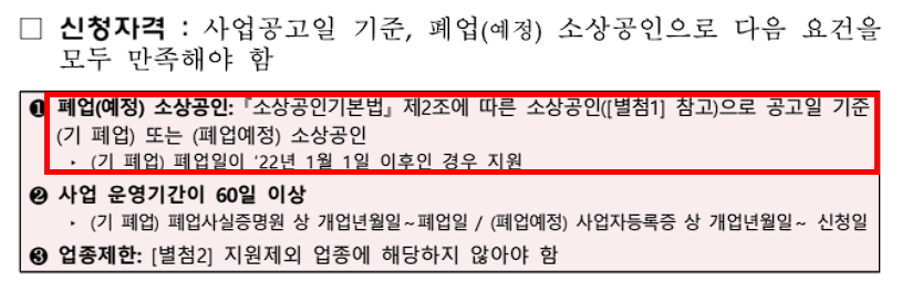 - 폐업 예정자는 신청이 불가하며, 반드시 폐업 신고 완료 후 신청 가능합니다.