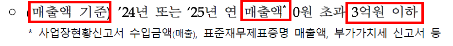 - 대상: 2024년 또는 2025년 연매출 3억 이하