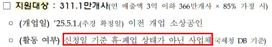 - 단, 7월 1일~25일 사이 국세청 신고 매출 있어야 신청 가능