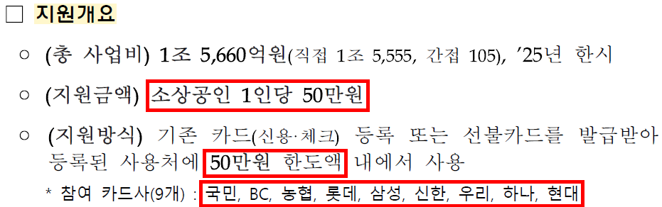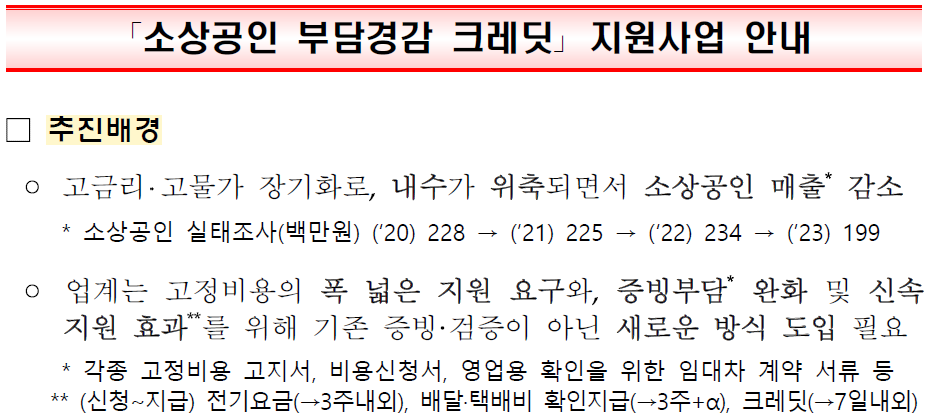 - 소상공인 50만원 크레딧은 반드시 매출 기준 확인 후 신청