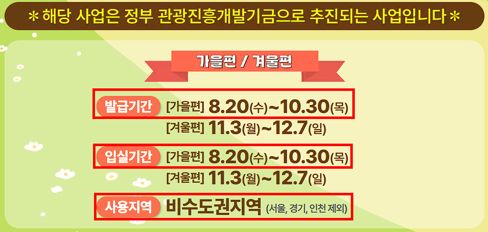 숙박 세일 페스타는 가을편·특별재난지역편, 겨울편 두 차례로 나누어 진행됩니다.