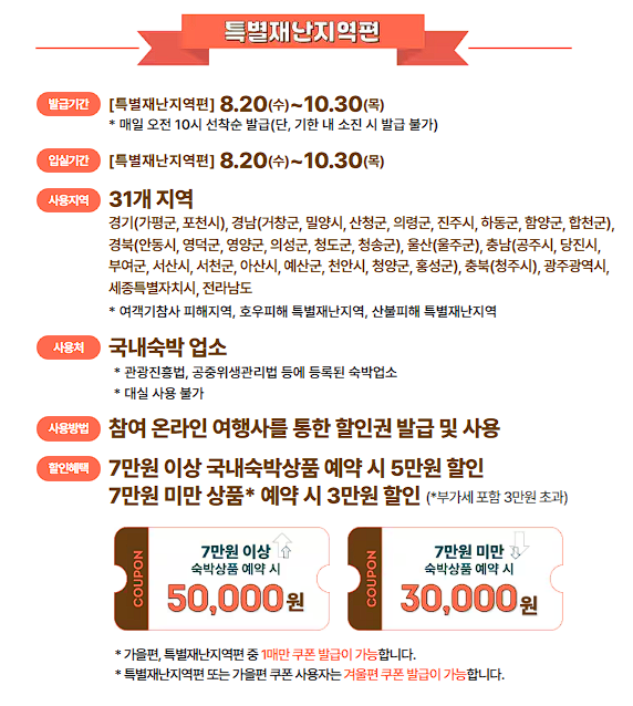 이를 통해 재난으로 어려움을 겪은 지역의 경제 회복과 관광 활성화를 돕는 동시에, 여행객에게는 알뜰한 혜택을 제공합니다.
