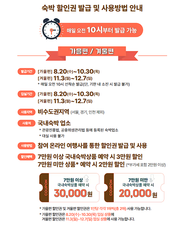 8월 20일 오전 10시부터 참여 온라인 여행사(OTA) 채널을 통해 선착순으로 할인권을 발급받을 수 있습니다.