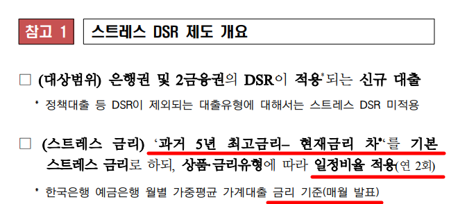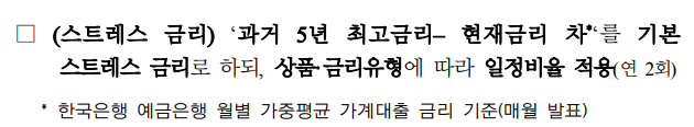 - 스트레스 금리: 기준금리 + 스트레스 가산금리