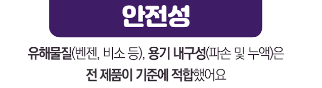 - 유해물질(벤젠, 비소 등)은 전 제품 기준 적합.