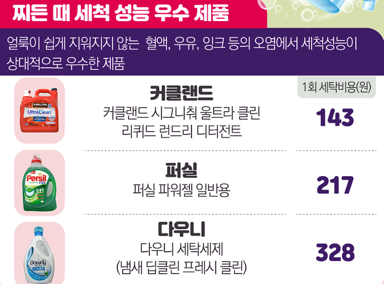 → 가격이 높은 편이지만, 혈액·잉크 세척 등 특정 오염에서 ‘우수’ 성능을 보여주는 특징이 있습니다.