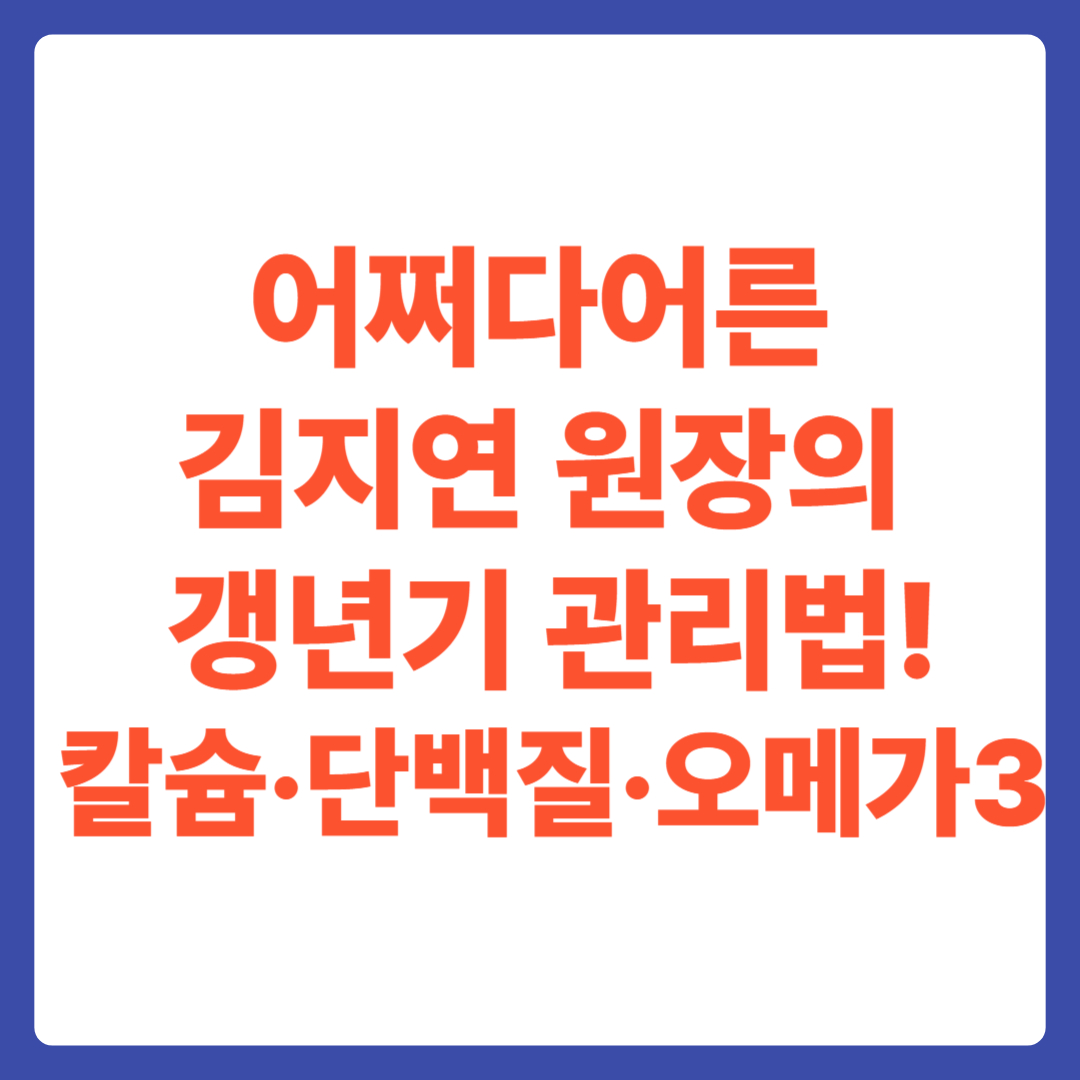 블로그 글이 구글 검색에서 “어쩌다어른 김지연 원장 갱년기 관리법”처럼 정확한 키워드로 노출되기를 희망하며, 여러분의 건강한 갱년기 여정에 든든한 안내자가 되길 바랍니다.