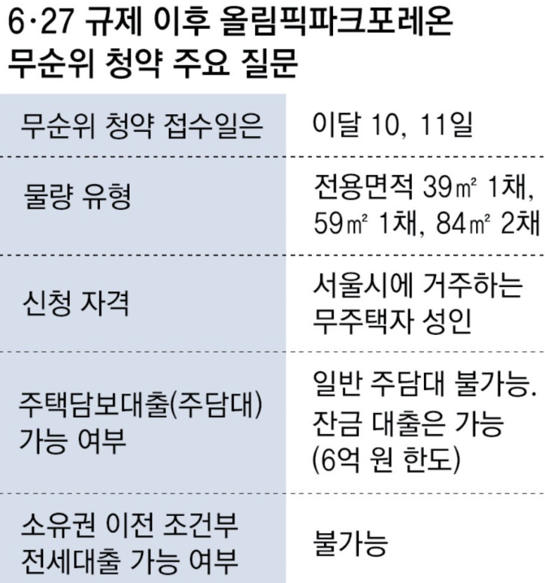 - 올림픽파크포레온 주택담보대출: 일반 주담대 불가