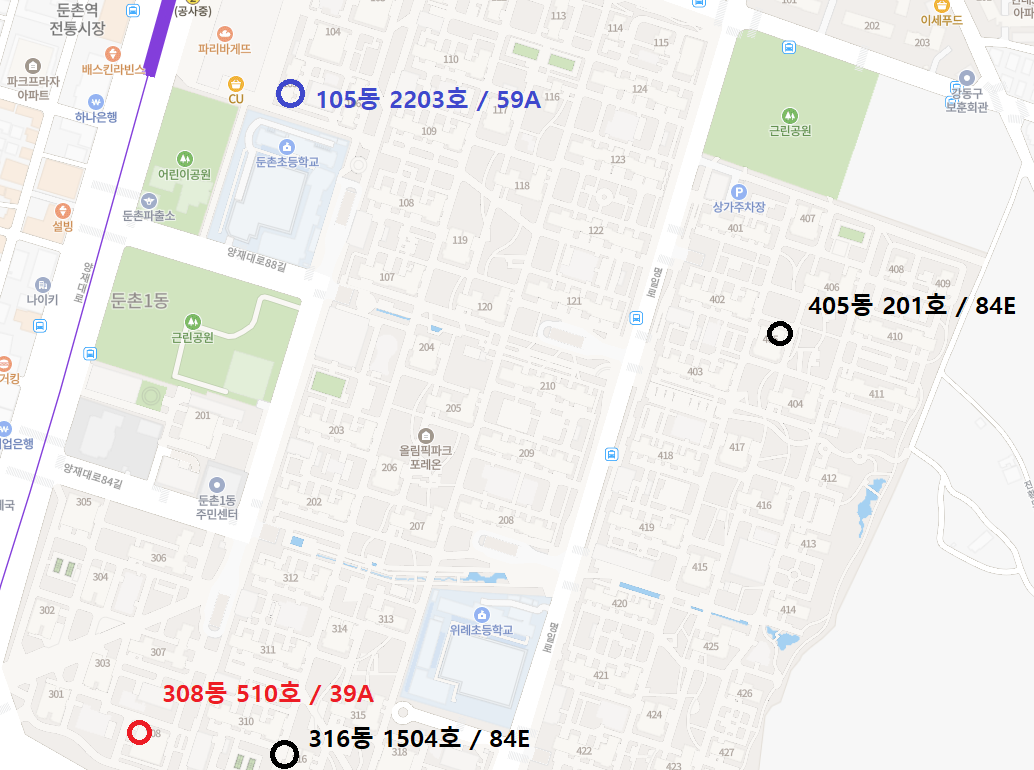 | 올림픽파크포레온 39A | ₩694,400,000 | ₩69,440,000 | ₩624,960,000 |