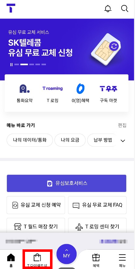 1)티월드 하단에서 'T다이렉트샵' 클릭!