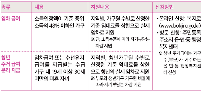- 중위소득 45% 이하인 경우 주거급여 신청자격 확보