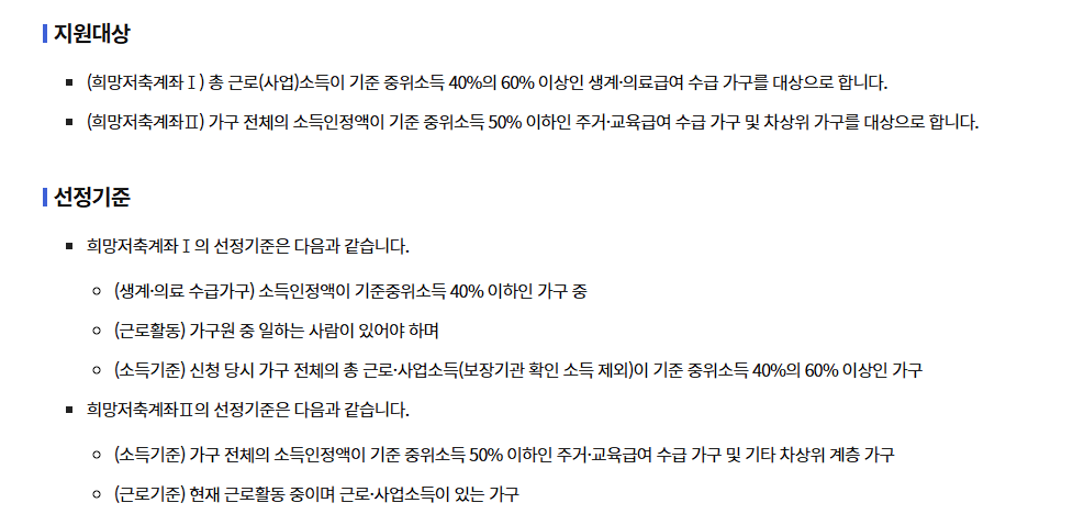 희망저축계좌Ⅰ과 희망저축계좌Ⅱ로 나뉘며, 각각의 대상자와 혜택이 다르기 때문에 꼼꼼한 확인이 필요합니다.