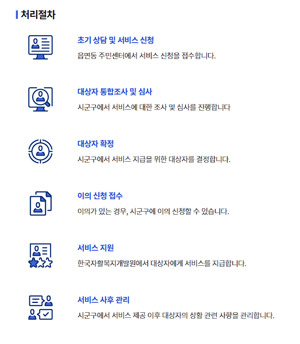 각 단계별로 이의신청도 가능하며, 서비스 지급 후에도 관리가 이루어집니다.