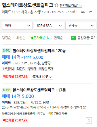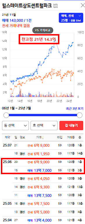 2025년 7월 마지막주 기준 59㎡ 호가는 직전실거래가를 5천~1억 정도 상회하고 있습니다.