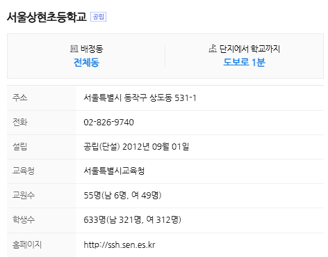 - 중학교: 상현중 배정 (도보 15분 이상, 학업성취도 우수)